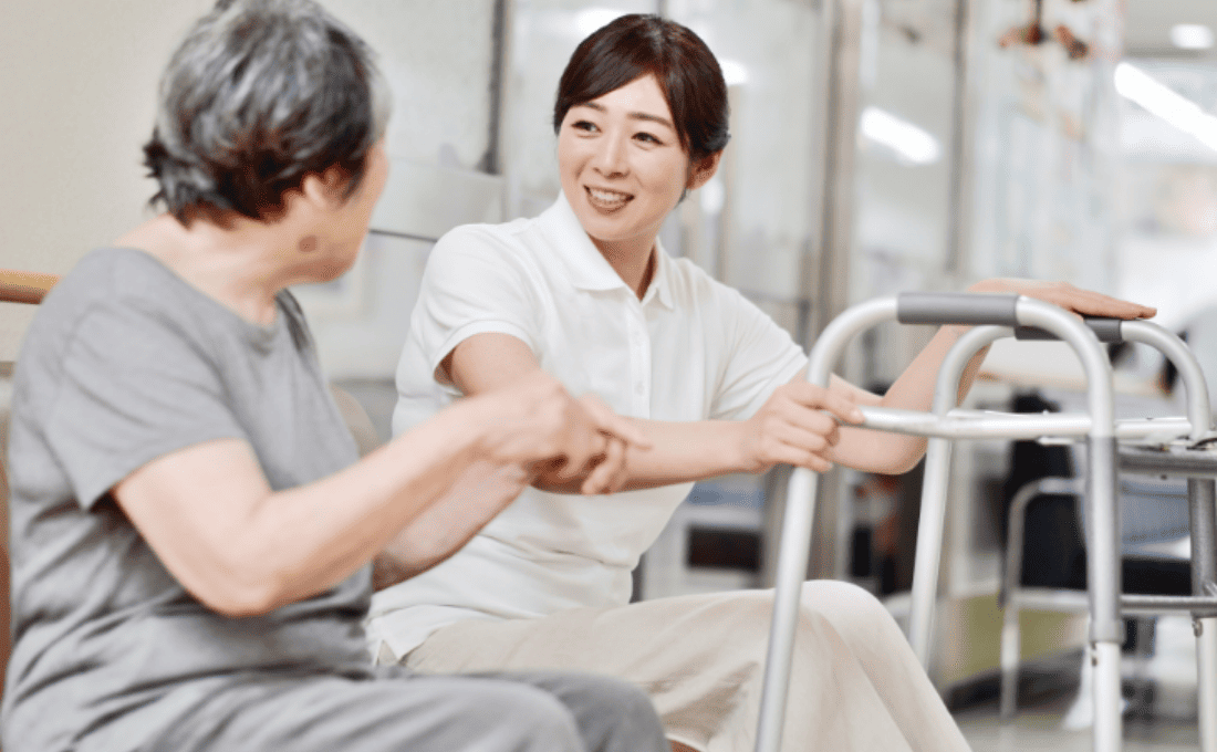 介護施設の利用者様が身の回りのことを自分で行い自立した生活を送れるよう訓練を行うのが機能訓練指導員の仕事です。介護を受けている人の介護度が高くならないような予防支援も行います。理学療法士、作業療法士、言語聴覚士、看護師などの資格保有が必須となる職種です。利用者様の身体機能を評価し、個別に機能訓練計画を立てます。その計画に基づいて、機能訓練指導員を中心に他職種との連携の下、利用者様の自立支援と身体機能の維持・向上に務めます。