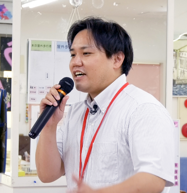住宅型有料老人ホームさわやかいそうだ館で勤務しております。施設長の大野翔平と申します。内山グループの基本理念を基にお客様が安心して生活できる環境作りと新しい生きがい作りに尽力しております。現在の年齢は30歳。3歳になる娘と妻の3人家族です。お休みの日にはみんなでドライブして、おいしい物を食べることが楽しみです。もしお顔合わせした際にはグルメ情報を教えていただけると、とてもうれしいです。